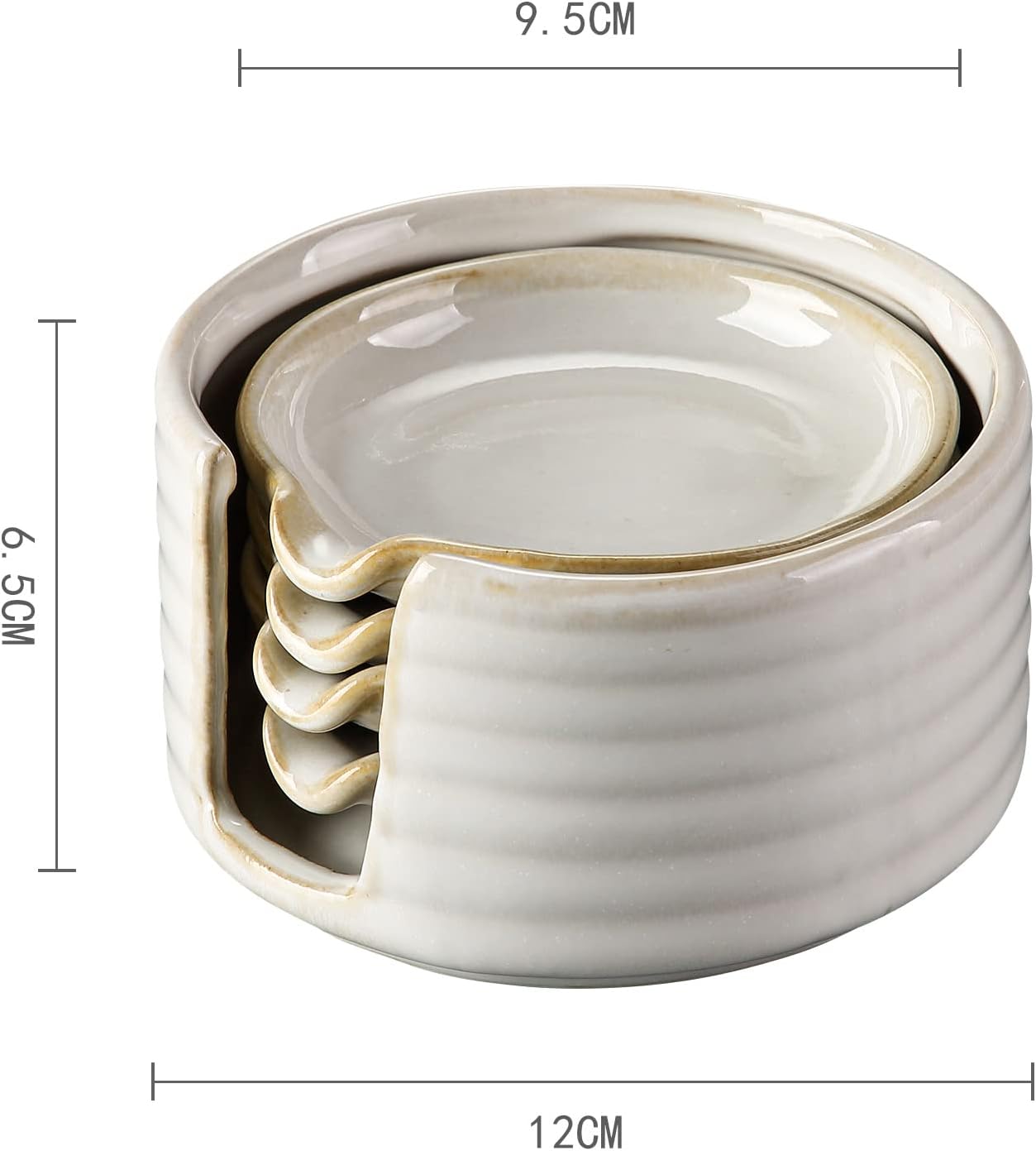 Ceramic Spoon Rest,Spoon Holder,Soy Sauce Dishes with Holder for Kitchen,Household Dipping Sauce Dishes Set, Side Dishes, Kitchen Basics,Set of 4 Kitchen Accessories For Utensils (cream)