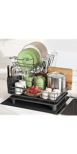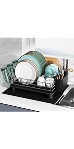 JASIWAY Black Stainless Steel Dish Drainers Drying Rack for Kitchen Counter w...
