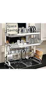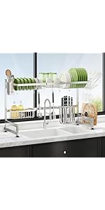 2 Tier Large Stainless Steel Expandable Over The Sink Dish Drainer Drying Rack