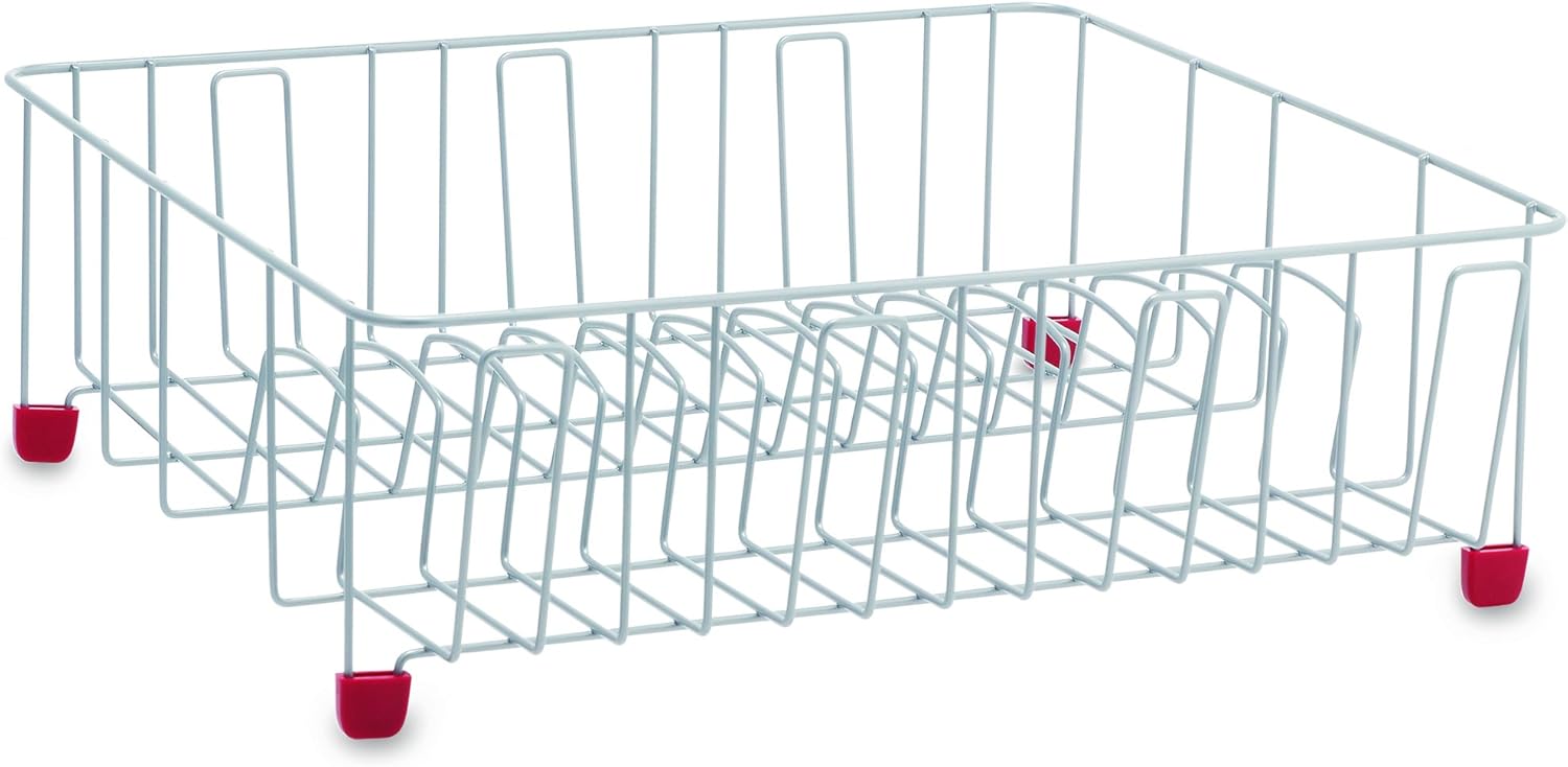 Farberware Classic Large Rust Resistant Full Dishrack with Removable 3 Compartment Flatware Caddy, Andlged Drain Board, 3-Piece, Red