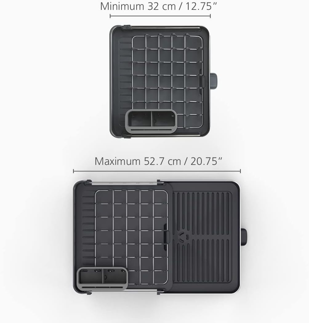 Joseph Joseph Extendable Dish Drying Rack with Dual Parts - Stainless Steel, Non-Scratch, Movable Utensil Drainer & Drainage Spout, Gray