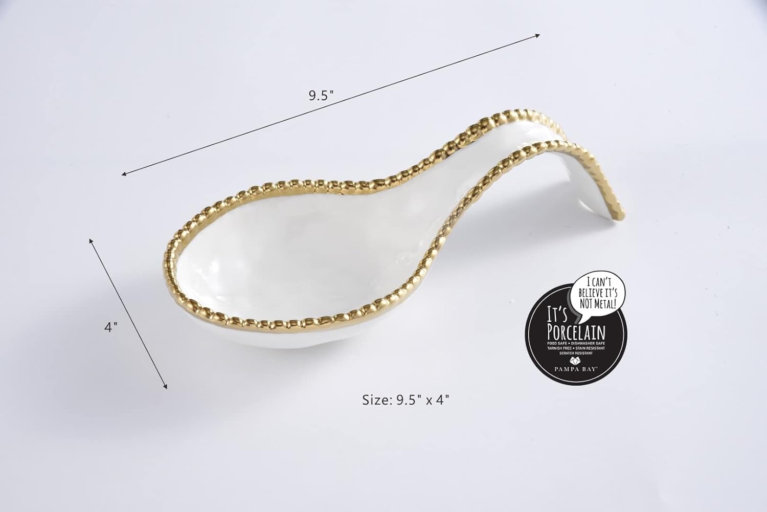 Pampa Bay Golden Salerno Titanium-Plated Porcelain Spoon Rest, 9.5 x 4in