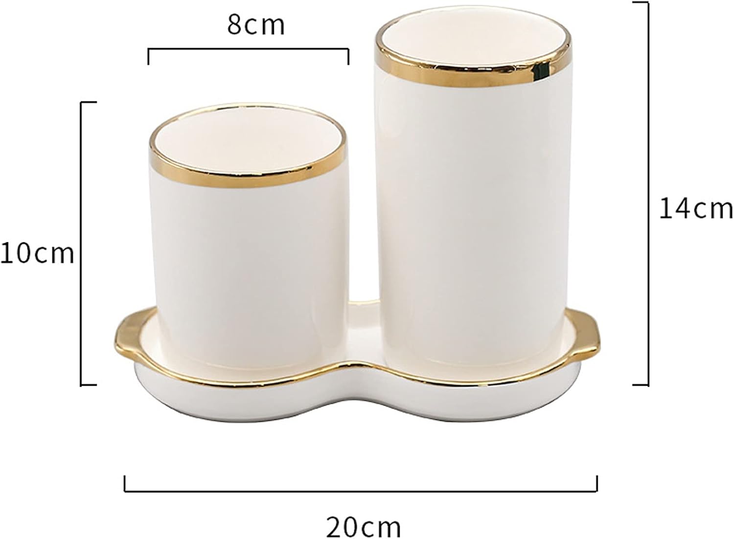 Utensil Caddy Chopstick Holder Ceramic Household, Kitchen Double-Layer Drain Chopstick Cage, Tableware Spoon and Fork Storage Tube Pen Holder (White)