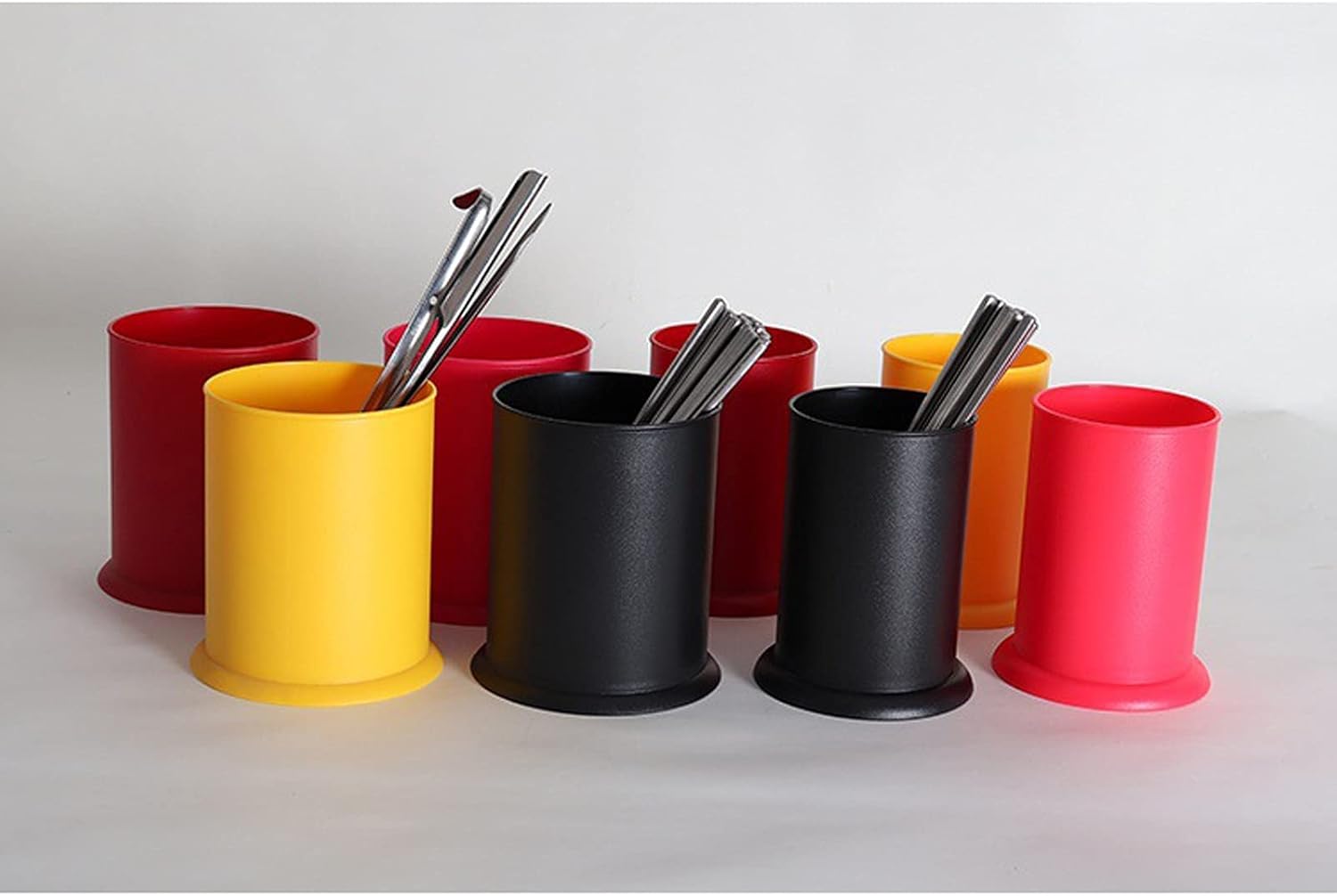 Utensil Caddy Plastic Storage TubeRound Table Storage Tube, Storage Bucket Kitchen Chopstick Tube Pen Holder Racks(Black,Large)